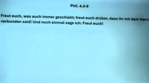 Claudia Klein hat an diesem Abend eine Predigtreihe mit dem Thema “ Hoffnung trotz … “ eröffnet. Unter dem Paulusbrief an die Philipper schrieb dieser “ Freuet Euch am Herrn, was immer auch geschieht “ . Keine Freibrief auf ein Leben im Paradiesmantel.