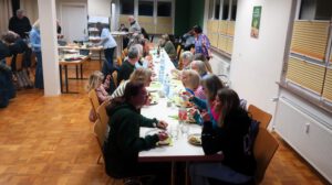 Anschließend war unter dem bekannten Motto “ Kühlschrank auf – Kühlschrank zu “ zu einem gemeinsamen Abendessen eingeladen. Wie immer wird dieser Einladung mit Begeisterung und hoher Anteilname gefolgt.
