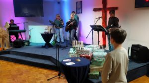 Marianne Bauer erzählte die Weihnachtsgeschichte nach dem Lukas Evangelium. Die Kidds unserer Gemeinde interpretierten die Geschichte in einem musikalischen Rahmen.