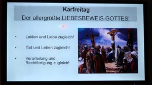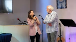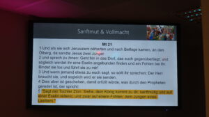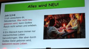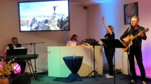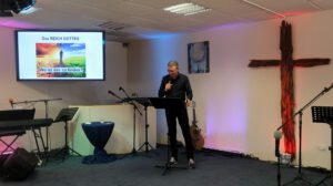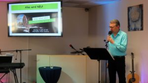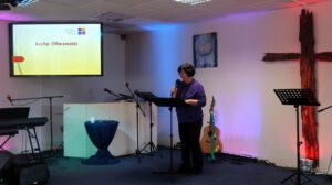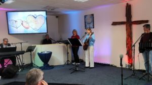 Der Heilig Abend Gottesdienst in einem würdigen Programm geschmückt. Das Lobpreisteam wurde durch Annika Weeks ( Tenorhorn ) und unserem Pastor Roland Lorenz ( Trompete ) erweitert. Stimmungsvoll wurde das Weihnachtslied “ Fröhliche Weihnacht überall “ geboten. Marianne Bauer lass dann die Weihnachtsgeschichte nach dem Lukasevangelium vor.